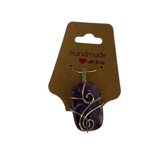 Sterling Silver Wire Wrapped Blue Stone on Beaded Necklace