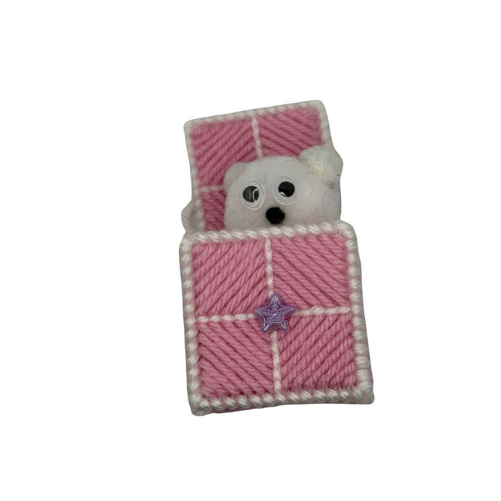 Keep your treasures safe and add a touch of whimsy with this handmade 2" squared plastic canvas box featuring a secret critter surprise inside. Perfect for storing small keepsakes or gifts, this unique box brings charm and fun to any space. - Handmade with durable plastic canvas - Features a hidden critter inside for a playful touch - Ideal for storing jewelry, coins, or small trinkets - Lightweight and easy to display anywhere - A unique gift from a local artisan collection