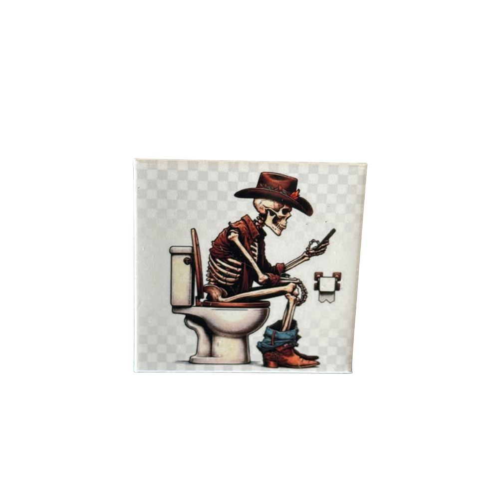 Skeleton Magnets Add a touch of fun and quirky style to your fridge or workspace with these handmade skeleton magnets. Each magnet features unique skeleton designs paired with playful sayings, perfect for adding personality or gifting to someone who loves a little Halloween flair all year round. - Handmade locally with care - Strong magnetic backing for secure hold - Variety of skeleton designs and sayings - Ideal for home, office, or as a unique gift