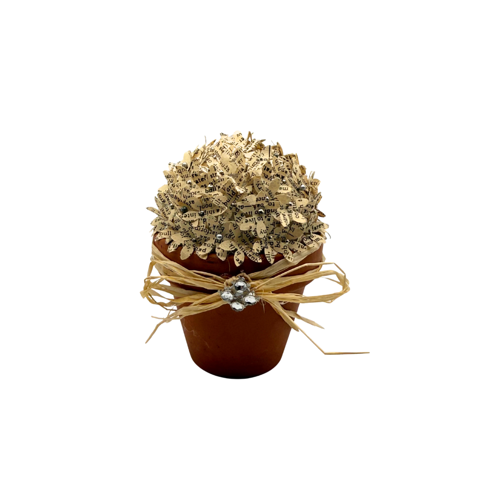 Delight in the charm of our Tiny Paper Flower Pots, handmade with care from recycled book pages. These petite floral arrangements add a whimsical touch to any space and make a thoughtful gift for book lovers and nature admirers alike. - Handmade from upcycled book pages - Compact size fits perfectly on desks and shelves - Unique, eco-friendly decor piece - Perfect gift for readers and flower enthusiasts